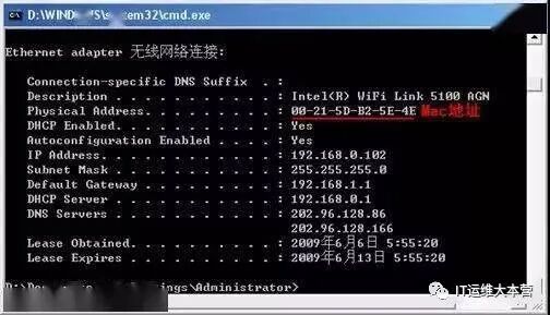 在不能上网的主机上cmdàipconfig /all,查看获取到IP地址信息.