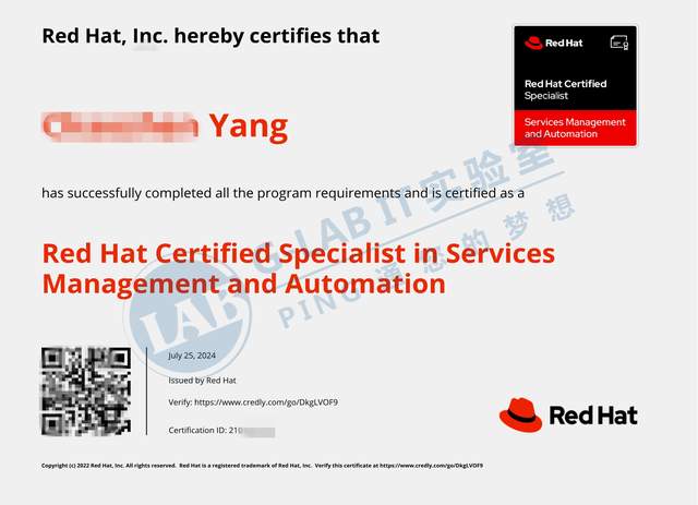 每通过一门考试,就会获取一张相关的证书,只有全通过五门考试方可获得红帽认证架构师RHCA证书。